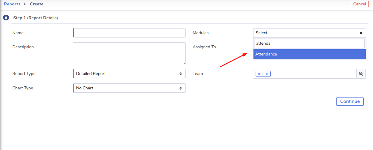 Kindly create a report on the respected module which in your case is the Attendance